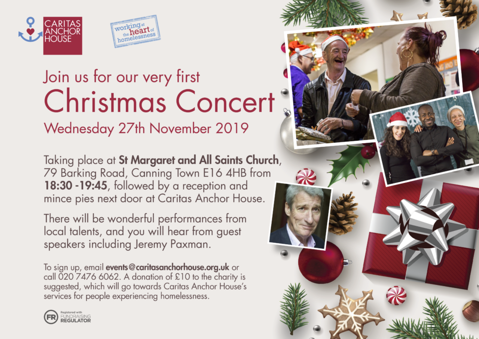 This year Newham homelessness charity Caritas Anchor House are delighted to be hosting their very first Christmas Concert! The event will include wonderful music from St Antony’s RC Primary School, Soul Sanctuary Gospel Choir and One Hope, and guest speakers include Jeremy Paxman. They’ve got a surprise in store for you too, so get your tickets now!