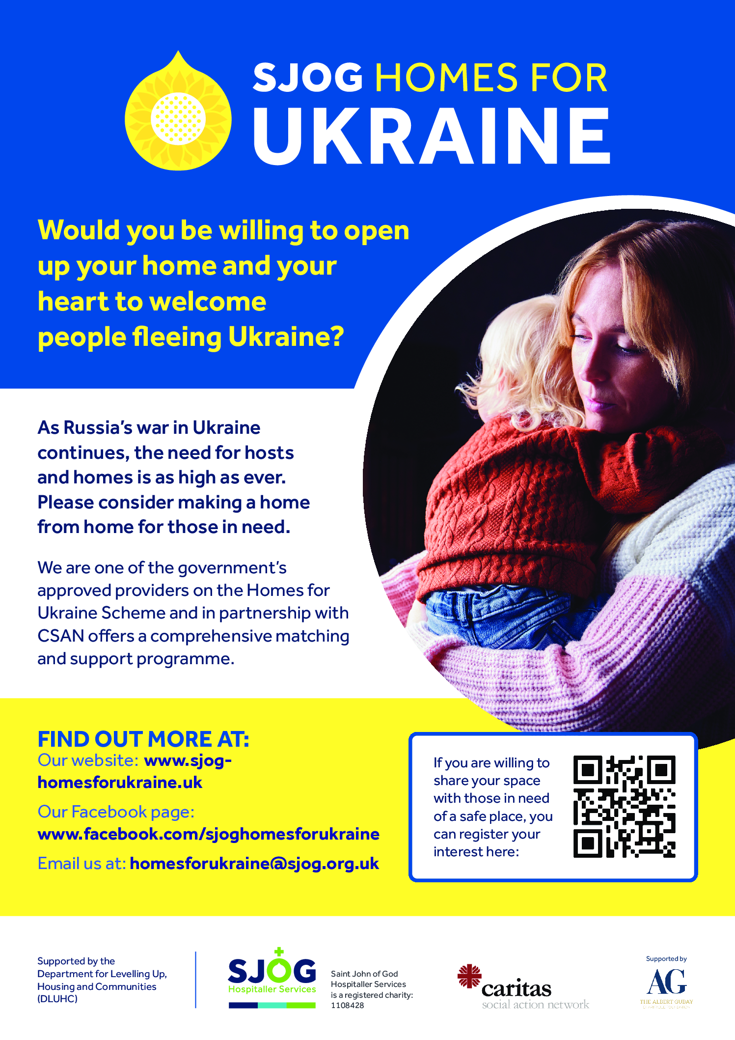 More information, including Frequently Asked Questions, can be found on the website at: www.sjog-homesforukraine.uk