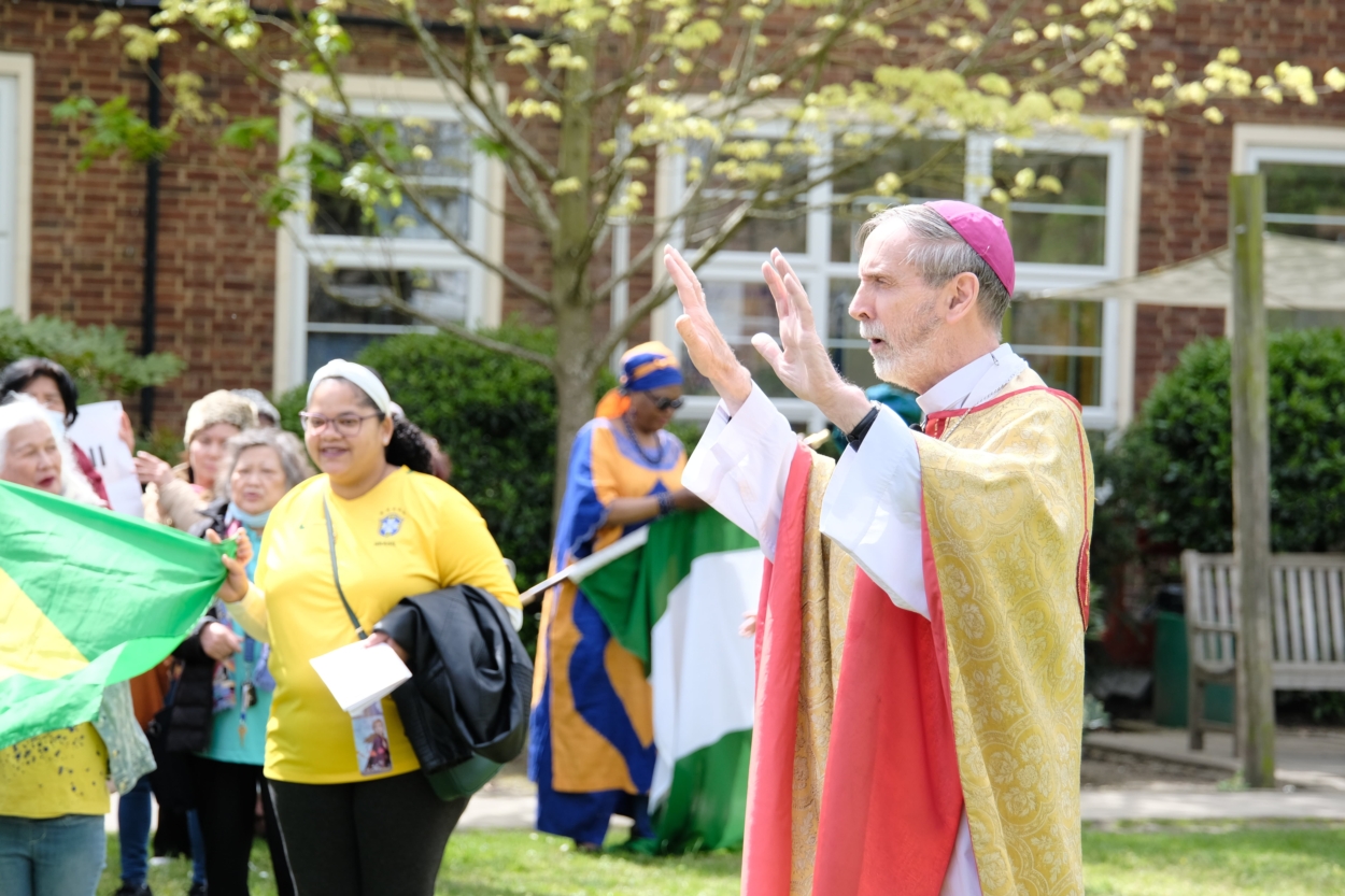 The annual Migrants Mass offered a timely opportunity to celebrate the contribution of migrants and refugees to our capital city and champion their rights. A joint initiative of the Dioceses of Westminster, Southwark and Brentwood which together encompass London, the Mass took place at St Antony’s, Forest Gate on Monday 1 May, the Feast of St Joseph the Worker. The Rt Rev Alan Williams, Bishop of Brentwood, presided with Bishop Paul McAleenan, Lead Bishop for Migration Issues for the Bishops’ Conference of England and Wales. The event was organised by Caritas Diocese of Brentwood, Justice and Peace representatives from the three dioceses and the Ethnic Chaplaincies, with input from Citizens UK. It reiterated and emphasised the messages of the Bishops’ recent document ‘Love the Stranger’, with a homily from Fr Dominic Howarth, Episcopal Vicar for Youth Ministry and Pastoral Care, and reflections on the Living Wage and migrant justice. Mgr John Armitage paid tribute to Neil Jameson, the founder of Citizens UK, who died recently.