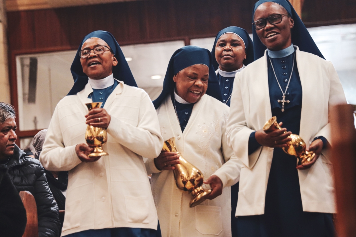 Combined choirs from St Antony’s Primary School, St Angela’s Ursuline School and St Bonaventure’s Secondary School sang during the service under the aegis of director Nathan Chan. Charity delegates from Aid to the Church in Need, Calais Light, Justice & Peace and CSAN, rubbed shoulders with parishioners from the three dioceses at the event. Many priests concelebrated and the bidding prayers were spoken in many different languages.