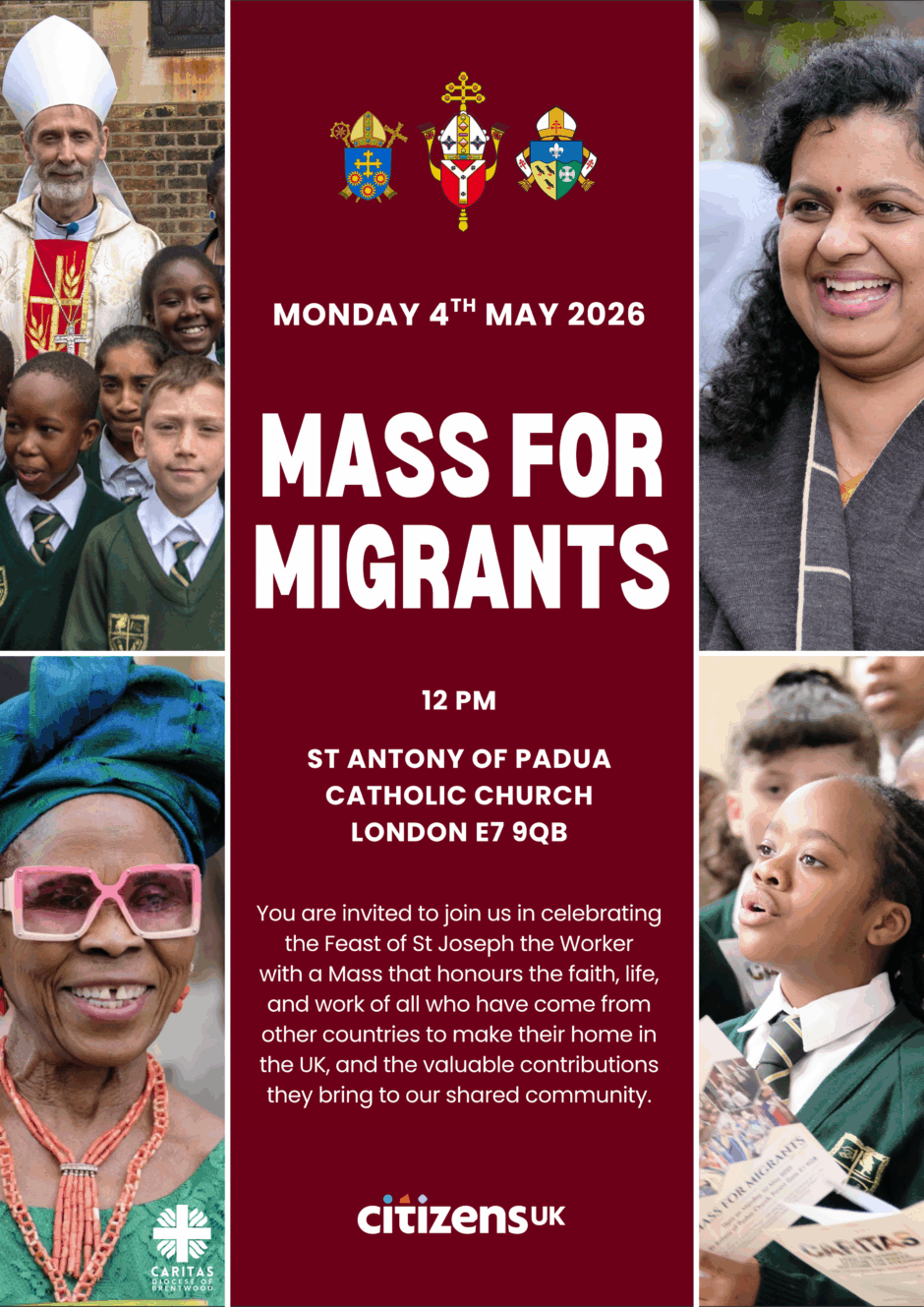 The Mass for the Feast of St Joseph the Worker is prepared by the Caritas and Ethnic Chaplaincies of the three Dioceses and celebrates the contributions made to faith, life and work in the UK by all those who come from other countries to make a home here.