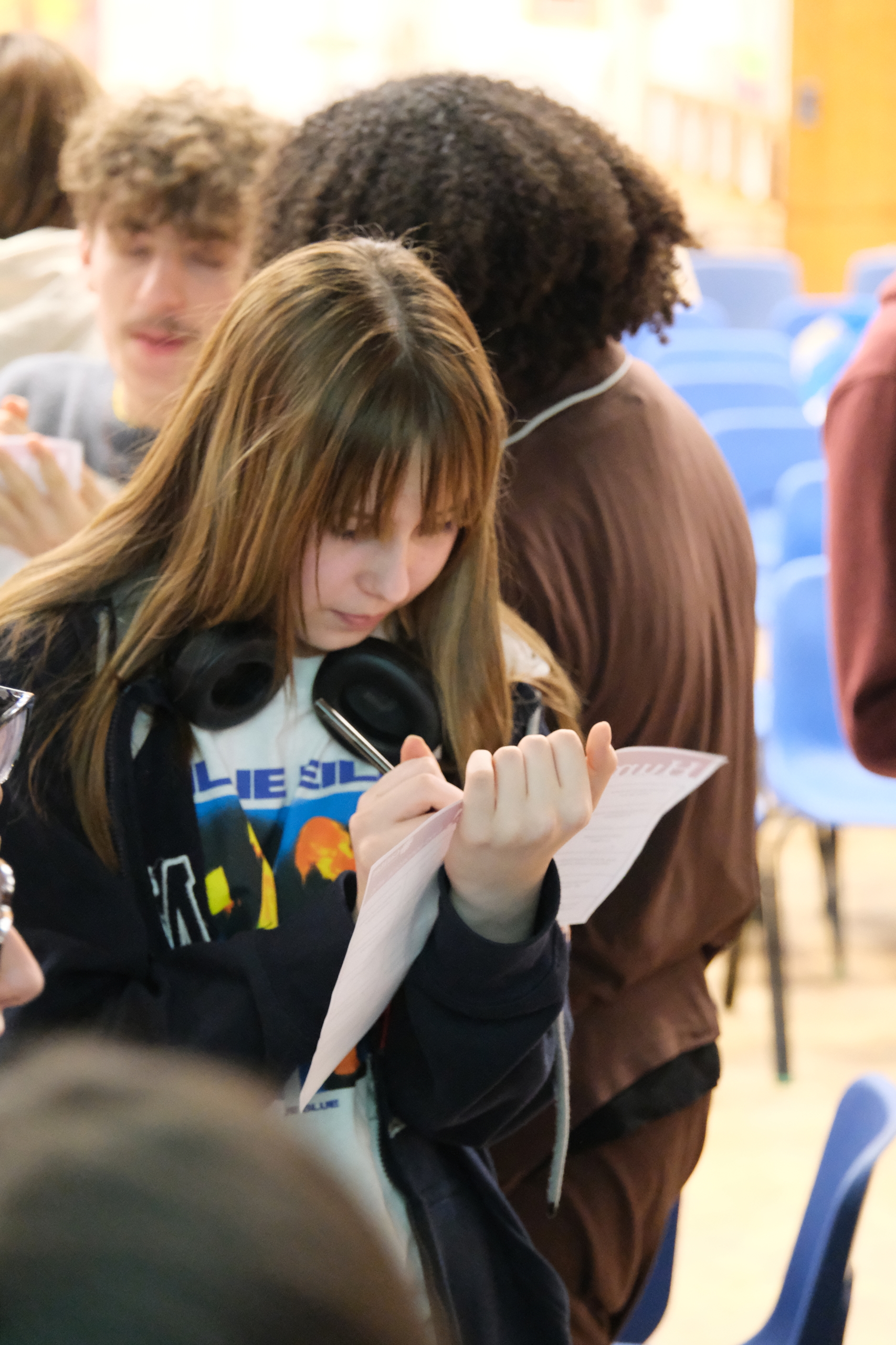 Siân, Michael and Ava then delivered an engaging and informative presentation. They shared insights into the work of Caritas Brentwood and encouraged students to reflect on their own communities: identifying local needs and imagining ways they might contribute to positive change. As students learned about the many forms of homelessness and the reasons for it, they were invited to explore how they could live in solidarity with those most in need. We explored practical actions they could take going forward, including advocacy, campaigning, and educating friends and family to help ensure the narrative around homelessness changes.