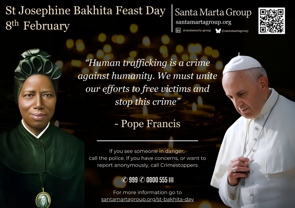 Sunday 8 February is the feast day of Saint Josephine Bakhita, and the international day of prayer and awareness against human trafficking.